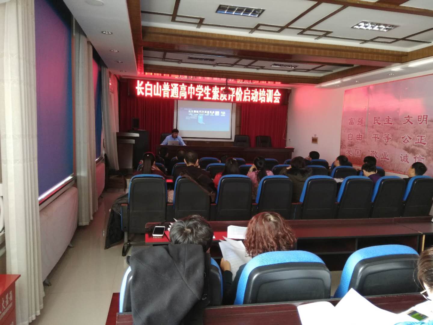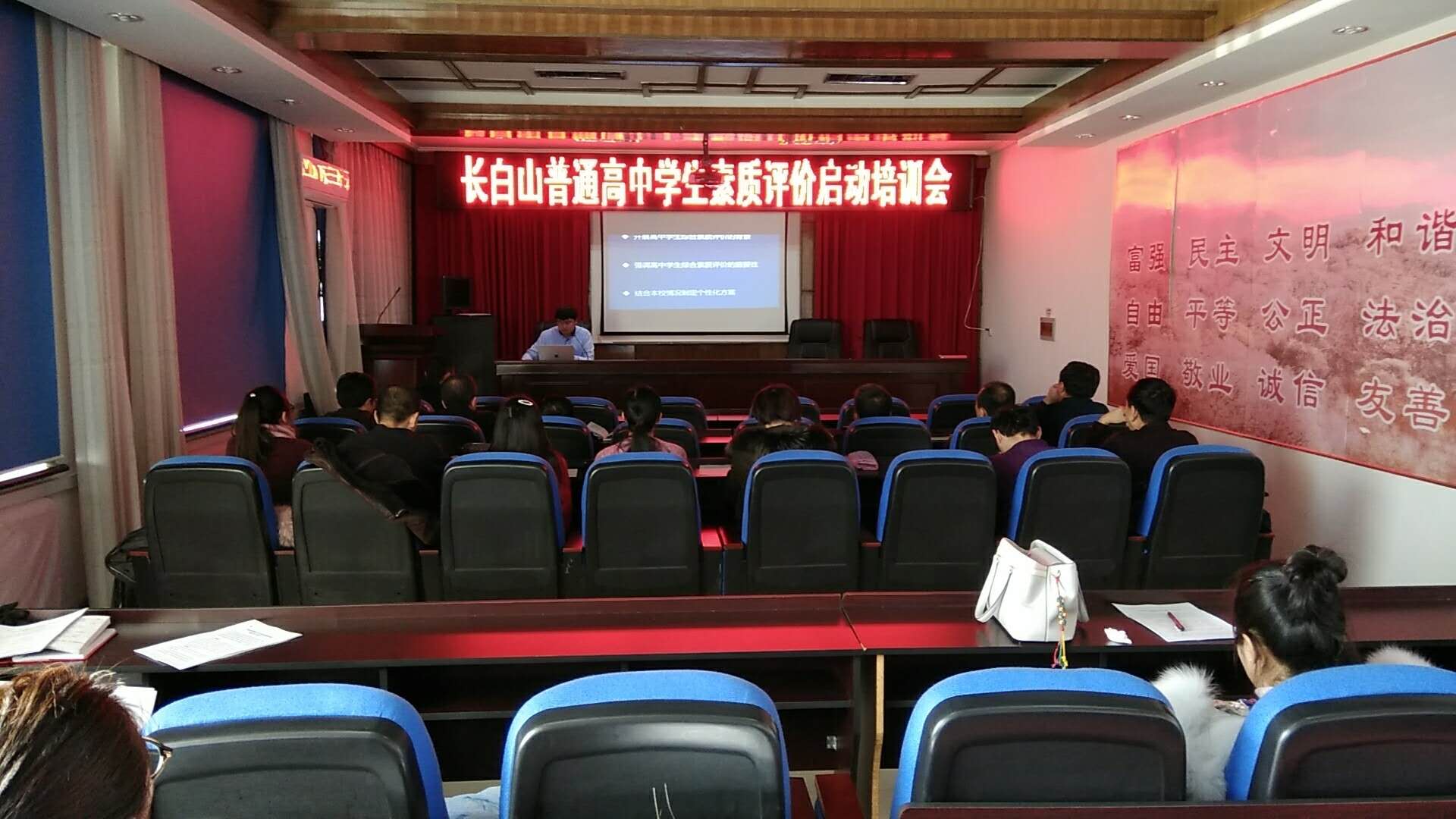 為落實(shí)吉林省教育廳《關(guān)于啟動(dòng)吉林省普通高中學(xué)生綜合素質(zhì)評(píng)價(jià)工作軟件安裝和平臺(tái)測(cè)試的通知》(吉教基二[2017]26號(hào))的文件精神,助力吉林省普通高中學(xué)生綜合素質(zhì)評(píng)價(jià)工作的順利開展,吉林省慧??萍夹畔⒂邢薰居?1月21日,派出實(shí)施人員參加長(zhǎng)白山管委會(huì)普通高中學(xué)生綜合素質(zhì)評(píng)價(jià)工作啟動(dòng)會(huì)暨評(píng)價(jià)平臺(tái)使用培訓(xùn)會(huì),對(duì)與會(huì)人員進(jìn)行了應(yīng)用培訓(xùn)與技術(shù)指導(dǎo)。